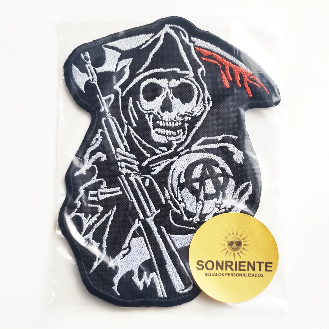 Espaldera bordada con diseño de Sons Of Anarchy de un tamaño de 20x15 centímetros, ideal para coser en ropa,mochilas o chaquetas de mezcilla.